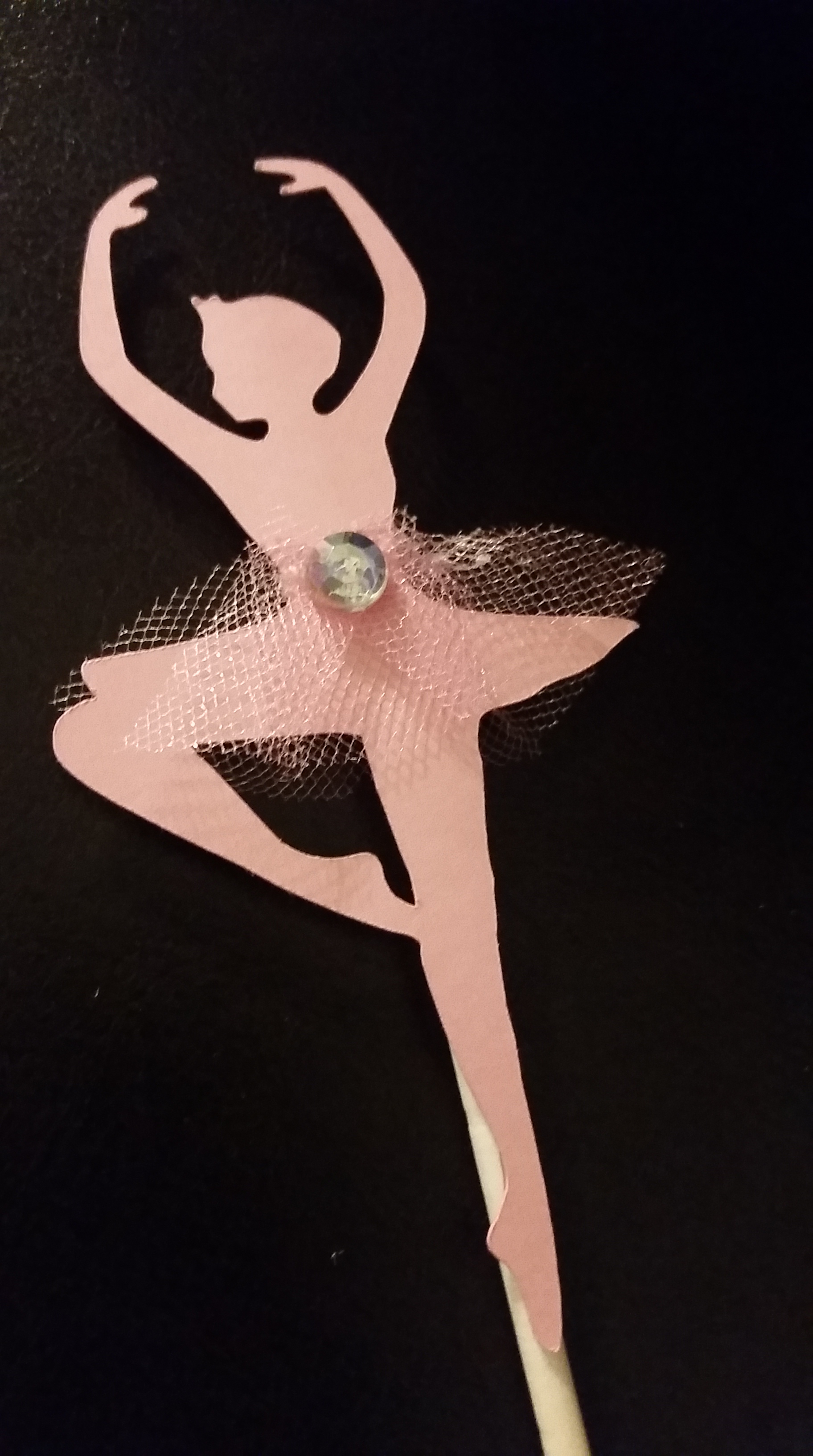 Utilizing my Cricut Explore cutting machine I was able to cut out the ballerina shapes very quickly! (I am not endorsed by Cricut in any way, shape or form, I received the machine as a Christmas present and LOVE it!) After a little trial and error (the cardstock ripped on the tiara and hands the first time), I was able to successfully cut out the shapes using the “Light Cardstock” setting.