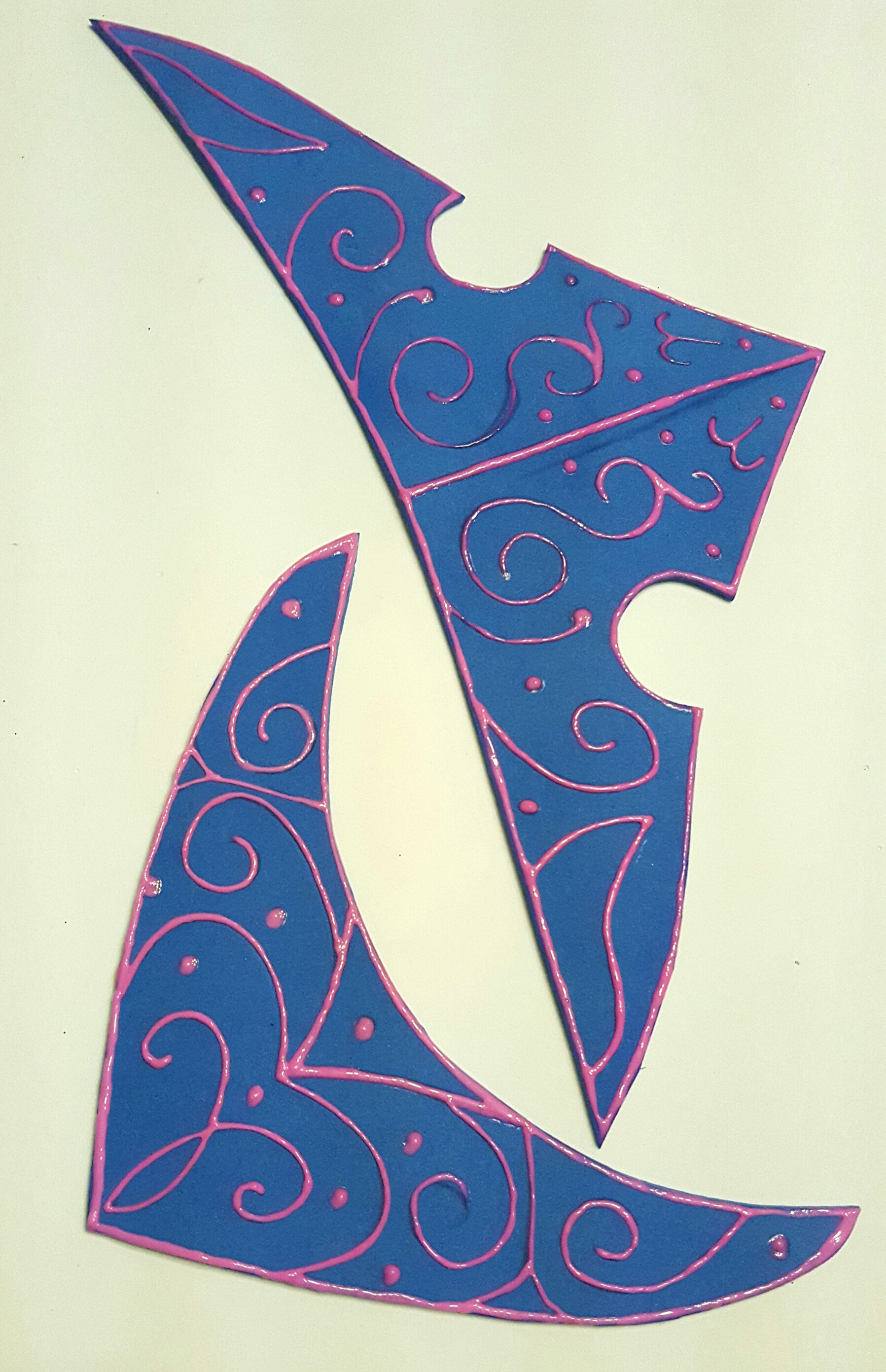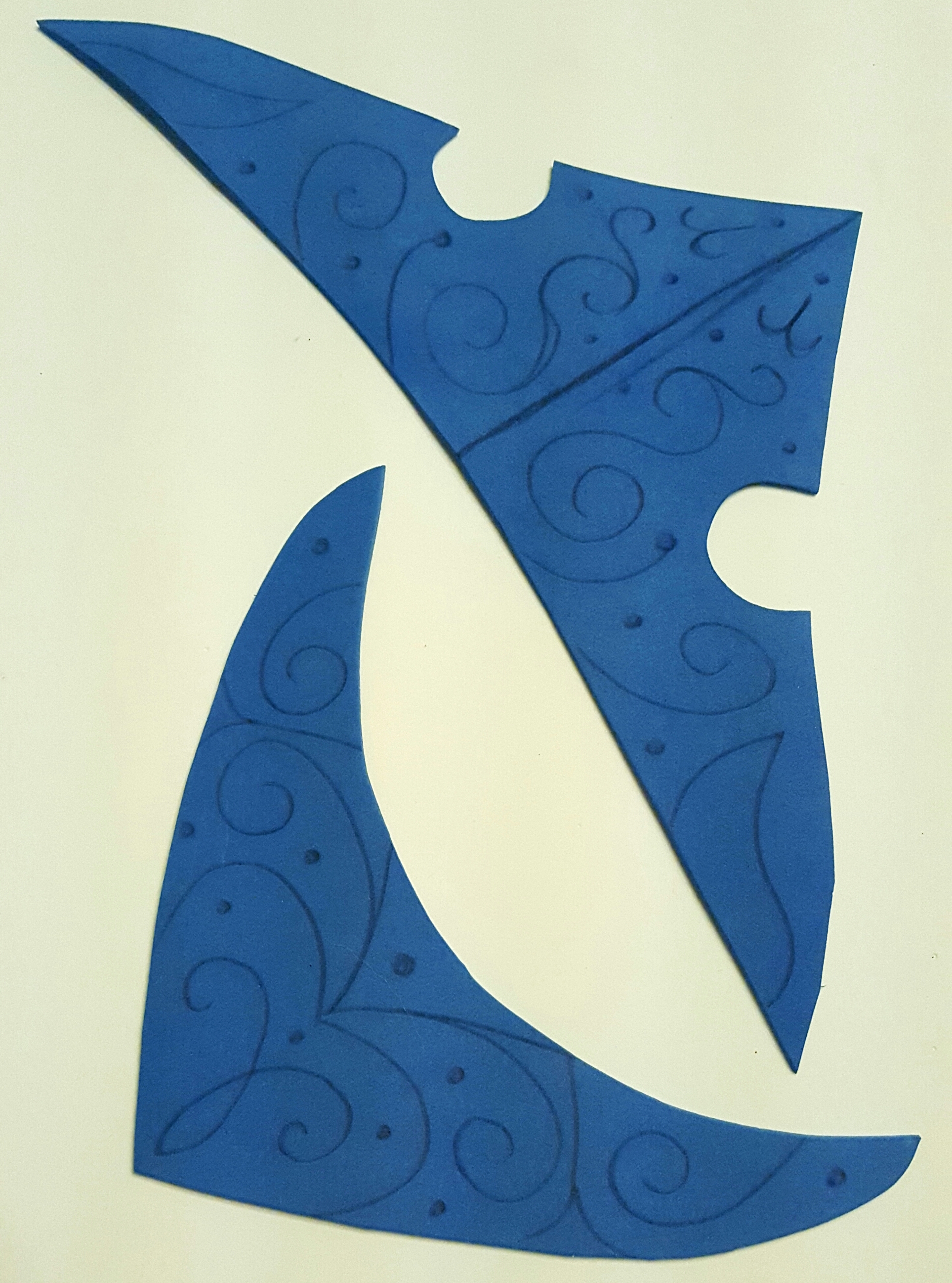 Once you have the foam cut out and the shape you want it. Draw using a pencil the swirly designs. If you Google “aurora Disney parks crown” there’s some good reference images. Or you can use mine if you want 😉 I try to make the tiara symmetrical in design but the necklace pattern is more asymmetrical.