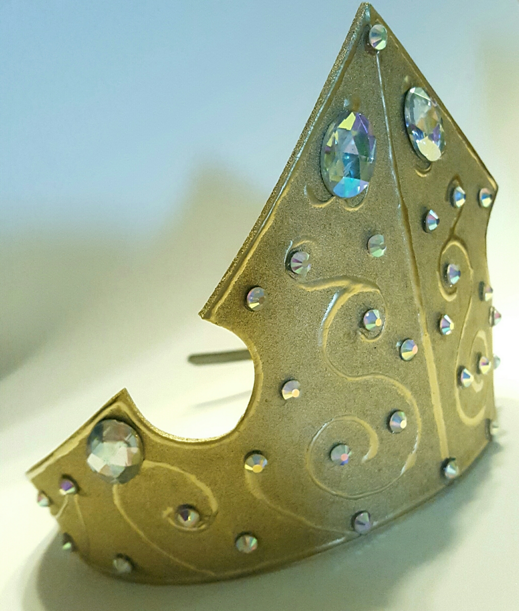 Once you have the shape you like, trace it onto the foam. For the tiara, as I said I use two pieces, I cut one slightly smaller and glue it to the back to give it more stability. You’ll want to crease the crown down the front center. You can do this by simply folding it in half and applying pressure. That way it gets the right shape 😉